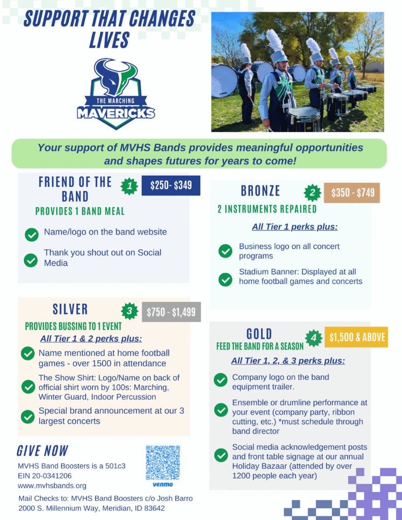 Follow the Band Boosters at https://www.facebook.com/MVHSBandBoosters to stay up to date!